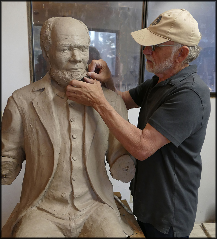 Process shot: sculpting Southworth in clay OPB: Oregon Art Beat